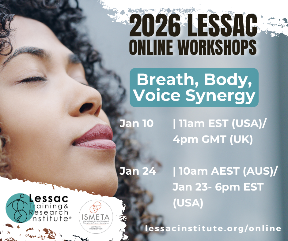 Join Lessac Certified Trainers for a series of 90 minute workshops in Lessac Kinesensic BodyVoice Training. Choose from 4 opportunities to explore the work in the comfort of your own home. These workshops are ideal for anyone curious about the work, or anyone looking for creative ways to embody more dynamic self-awareness.