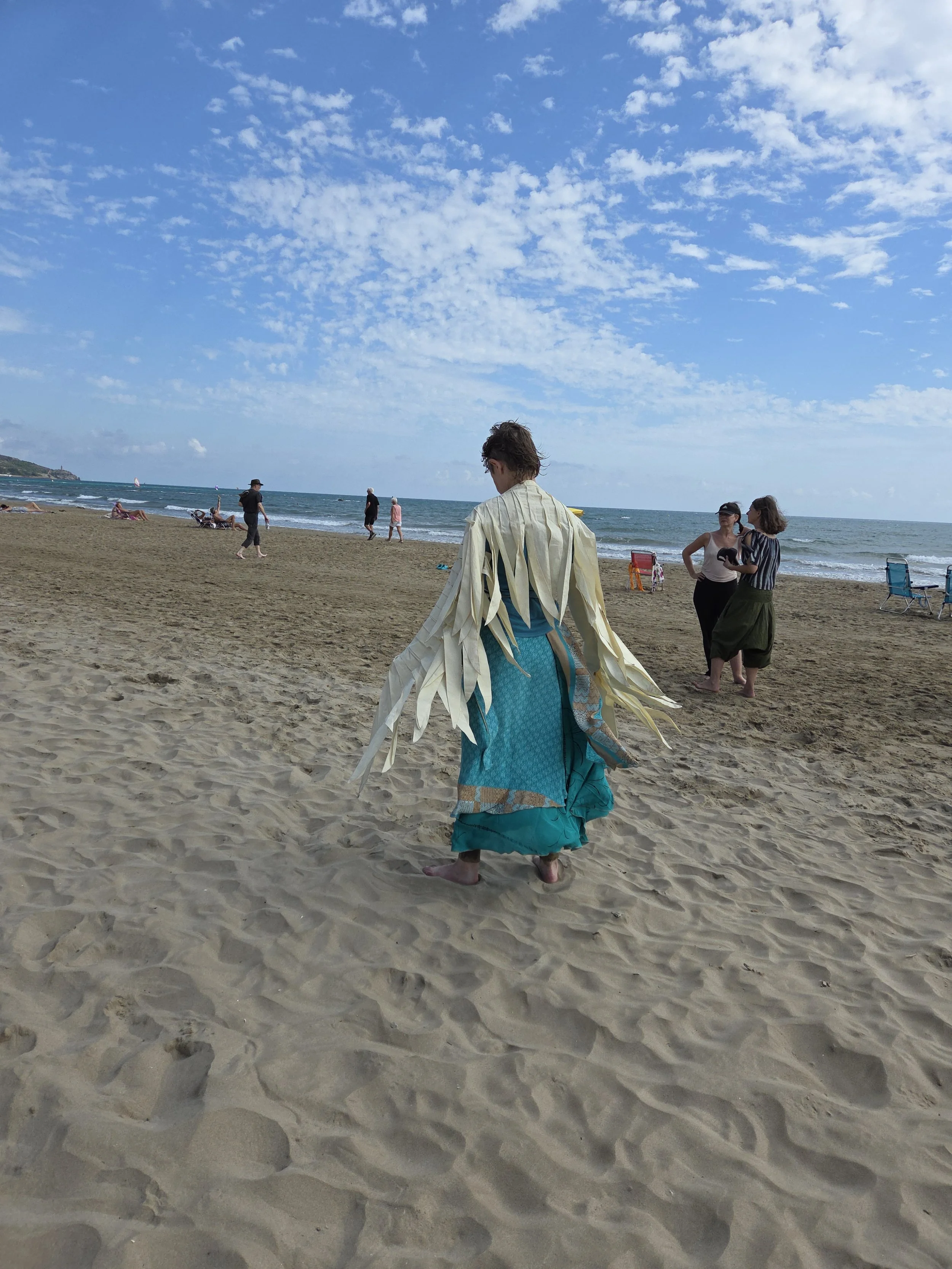 She had brought photos, materials and costumes including a majestic birdlike extension of wings which we could choose to engage with at any time. The photos she placed around the room were of animals and nature from around the world. It was clear that “movement of life” was also about all the non-human expressions of life in our world. Was this different? You betcha. But also I was excited to experience a workshop in a different way, that’s why I was here. And this felt inclusive, open, embodied, creative. We all touched ground, we contemplated “how gratitude feels inside… is there a lifting, a lightness, in the heart, or somewhere else?” [2] We moved and let ourselves be inspired by what our senses took in related to all of these things.